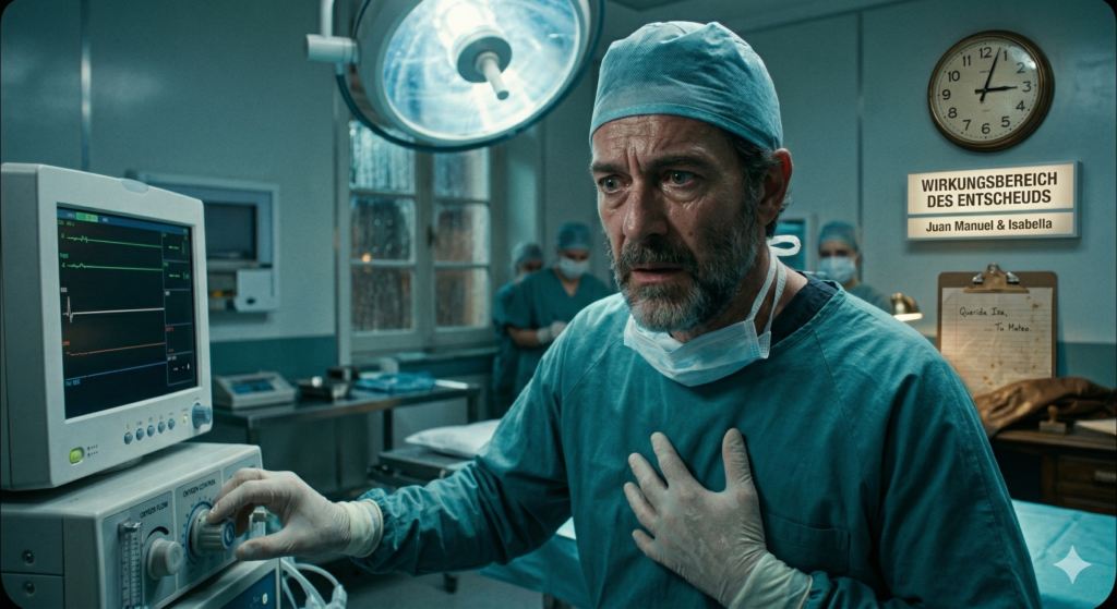 Als er die Augen öffnete, hatte sich bereits etwas verändert. In diesem Moment hörte Juan Manuel auf, Arzt zu sein. Er verlangsamte die Sauerstoffzufuhr. Die Bewegung war winzig. Fast unsichtbar. Doch im Inneren fühlte sie sich wie ein Todesurteil an. Er starrte auf den Monitor und täuschte einen Kampf vor, während er innerlich wartete. Er wartete auf den Moment, in dem das Herz aufhören würde, diesem Jungen zu gehören.