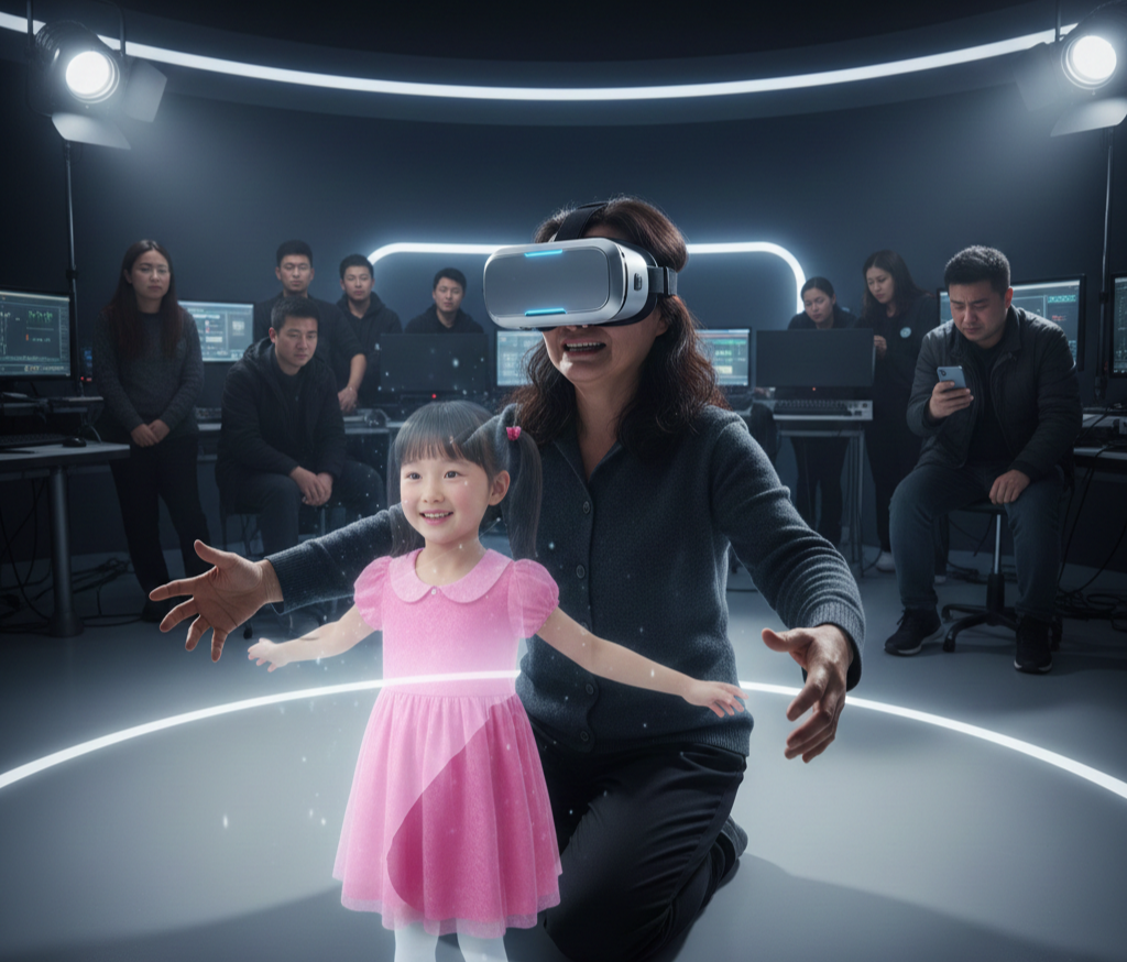 Im Zentrum eines kalten Pekinger Studios atmete Mei Lin künstlichen Sauerstoff und wartete auf ein Wunder. Als die schwarze VR-Brille ihre Augen bedeckte, bekam die Realität einen Riss. In Sekundenbruchteilen wurde die Stille des Studios durch das Zwitschern der Vögel im Park ersetzt, und da war sie – Xiao Yun, ihre siebenjährige Tochter, die auf sie zulief.