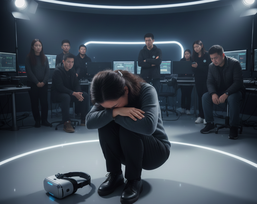 ​Mei stürzte nach vorne, um das Kind zu umarmen, doch ihre Hände griffen ins Leere. In diesem Moment erlebte ihr Gehirn einen eisigen Schock. Sie begriff: Das war nicht Xiao Yun, sondern ein Spiel aus Licht und Schatten, eine präzise mathematische Berechnung. Sie sah die Falten des geliebten rosa Kleides ihrer Tochter, aber auf ihrer Haut spürte sie nur den kalten Kunststoff der Ausrüstung. Der Schmerz des Verlustes, den sie tief in ihrer Seele zu begraben versucht hatte, brach mit neuer Gewalt hervor. Das war schrecklicher als die Stille des Grabes; es war Xiao Yuns „Gespenst“, das weder Geruch noch Wärme besaß.