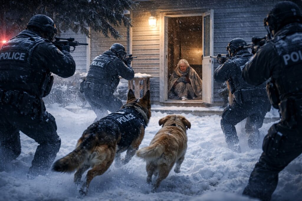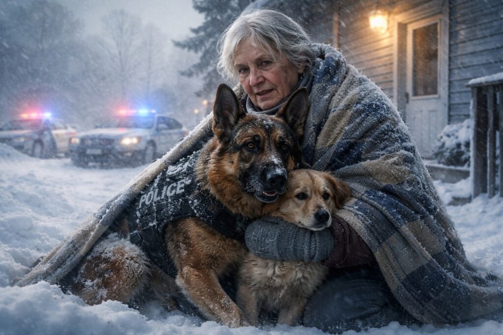 Der Rüde hieß K9 Officer Bear – Badge 002. Die Hündin trug ein Ortungsgerät. Ihre Flanke war aufgerissen. Margaret wusch die Wunde so gut sie konnte. Bear legte eine schwere Pfote auf ihr Handgelenk – nicht drohend, eher bittend. Dann leckte er kurz ihre Haut. Vertrauen.