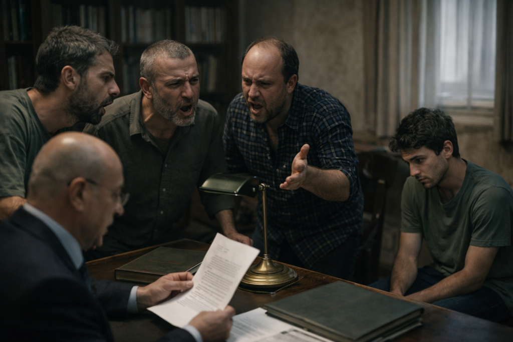 — „Mein Haus… und das dazugehörige Grundstück… vermache ich vollständig… Ardit.“