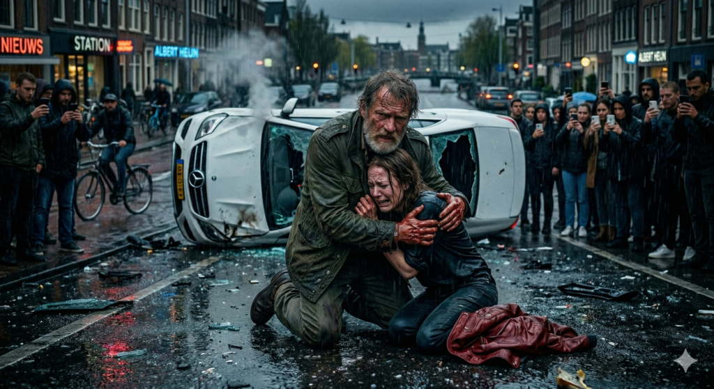 Plötzlich zerschnitt das Kreischen von Bremsen und der dumpfe Aufprall von Metall die Luft. Mitten auf der Straße war ein luxuriöser weißer Wagen umgekippt. Die Fahrerin, eine junge Frau namens Saskia, hing kopfüber im Sicherheitsgurt, während grauer Rauch unter der Motorhaube hervolloderte.